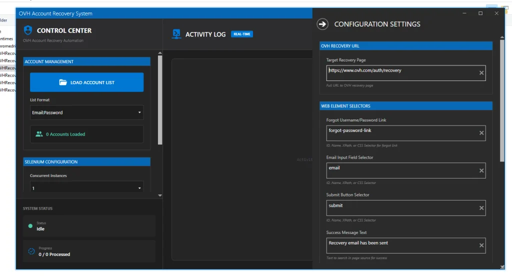 OVH EMAIL ACCESS CHECKER 2026 is an automated checking software that interacts with OVH recovery pages using browser emulation. Instead of relying on simple API calls or outdated scripts, it uses real web interaction to process email inputs, submit recovery requests, and detect success messages.