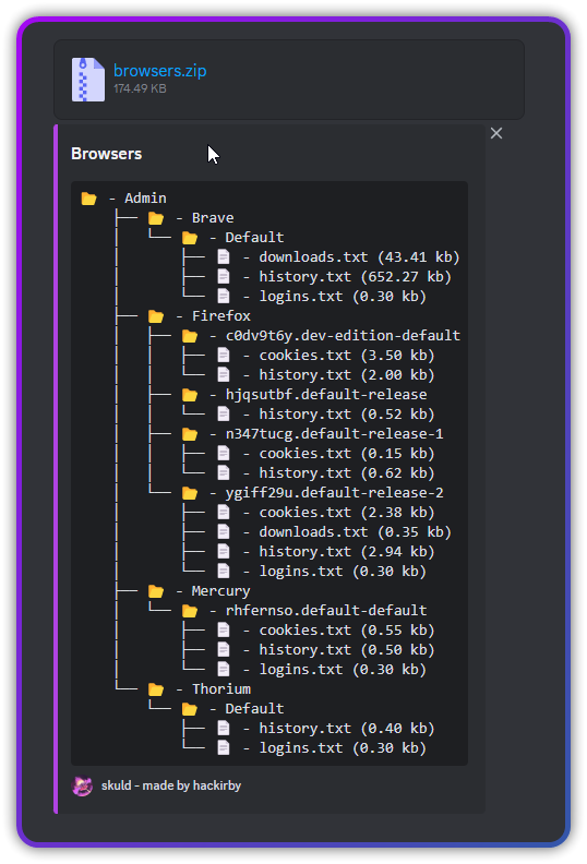 After collecting data, Skuld Stealer 2026 compiles the stolen information and transmits it to attacker-controlled infrastructure.