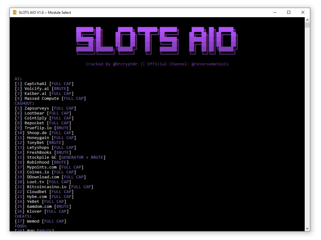 Slots AIO Checker 2026 represents the growing automation trend within cybercrime ecosystems. The broad list of modules shows that attackers pursue accounts across nearly every industry sector.